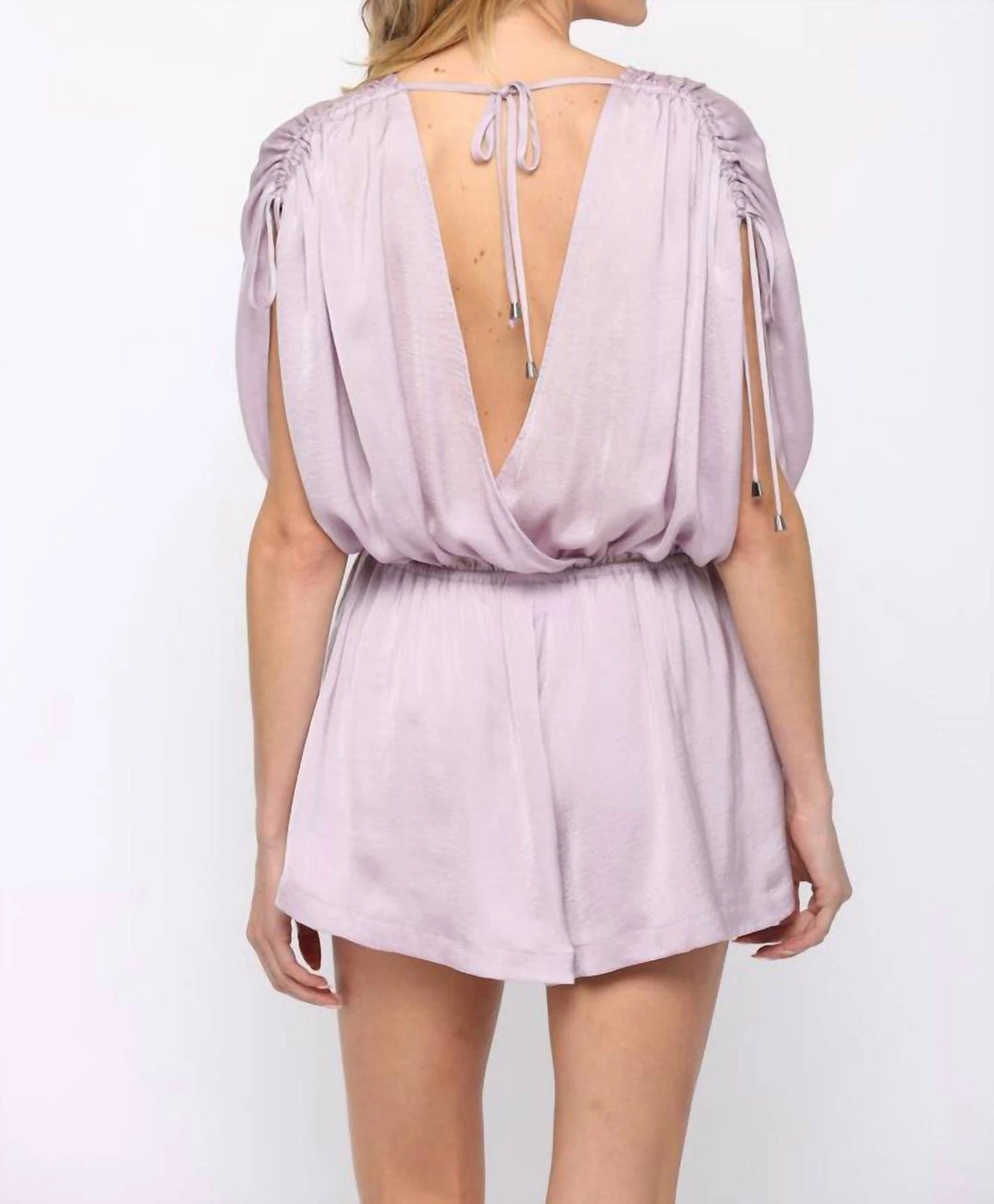 Best deal 🛒 Fate 👩 women Adjustable Tie Shoulder Surplice Romper in Lavender ⭐