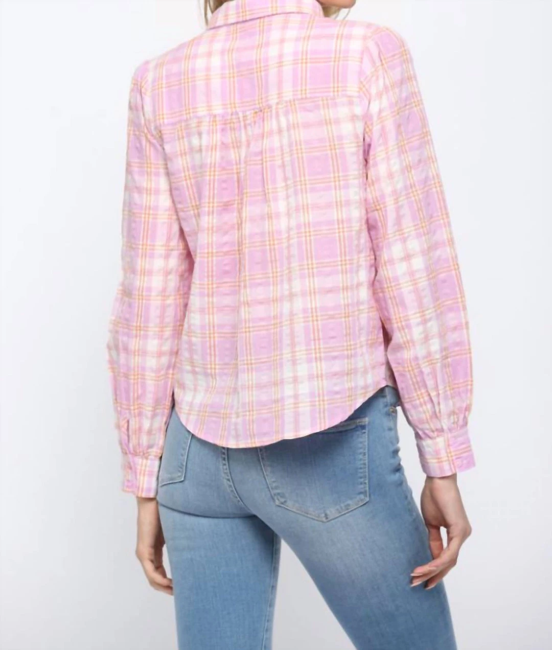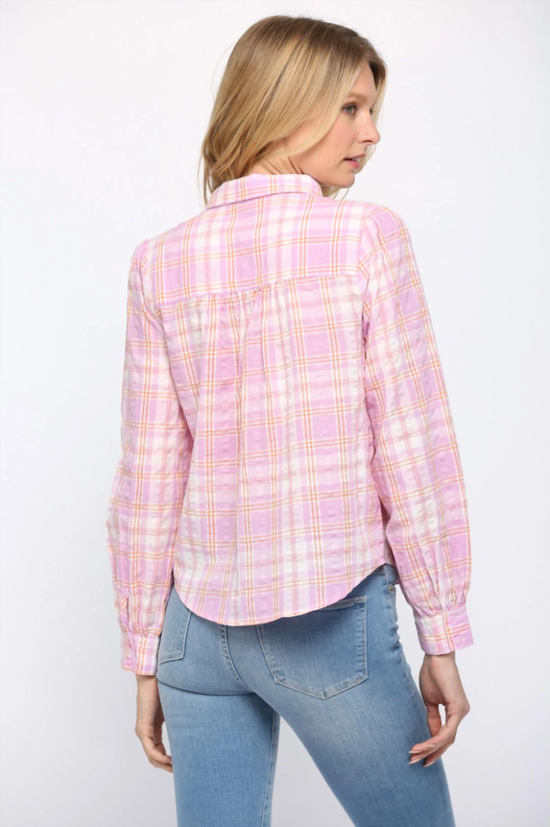 Plaid button down shirt in a shorter length….perfect to wear with shorts, pants or over a bathing suit.รย