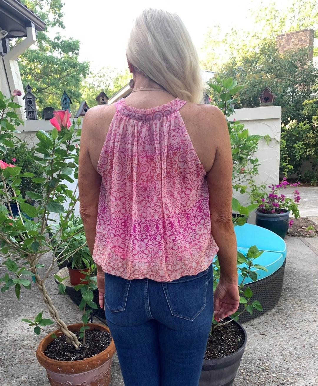 Discount ๐ Fate ๐ฉ women Floral Halter Button Front Blouse in Fuchsia Multi ๐ฏ