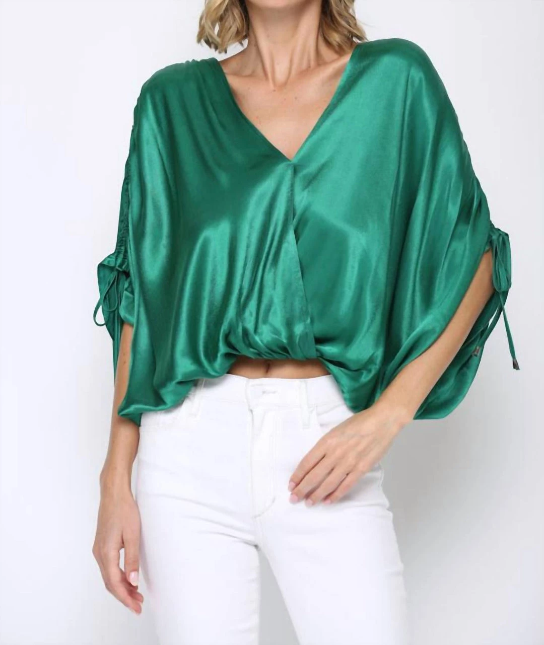 Budget ๐งจ Fate ๐ฉ women Izzy Ruched Shoulder Surplice Wrap Style Top in Deep Green ๐
