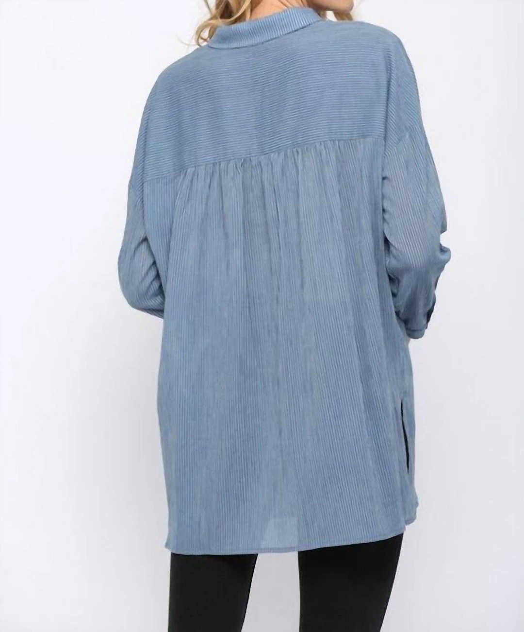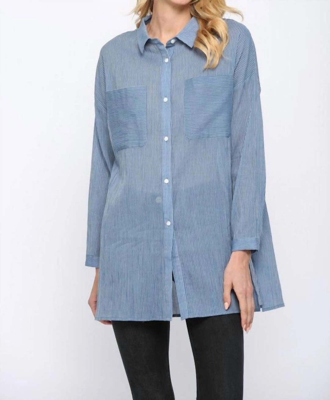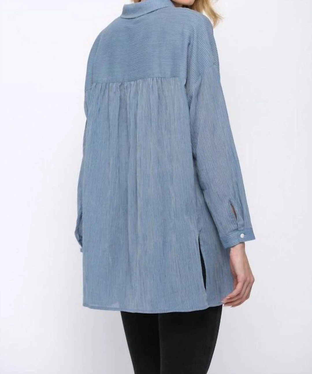 Thin Striped Button Down ShirtTwo Front PocketsShoulder To Hem 31″Runs Big100% Cotton