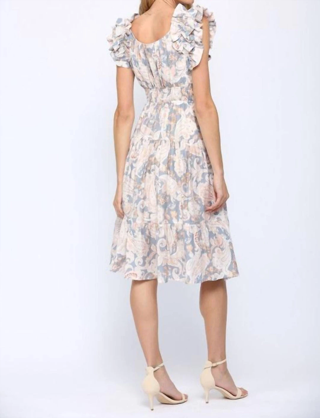 Ruffle Shoulder Midi DressShoulder To Hem 42″Elastic WaistFits True To Size80% Rayon 20% NylonΓΒ