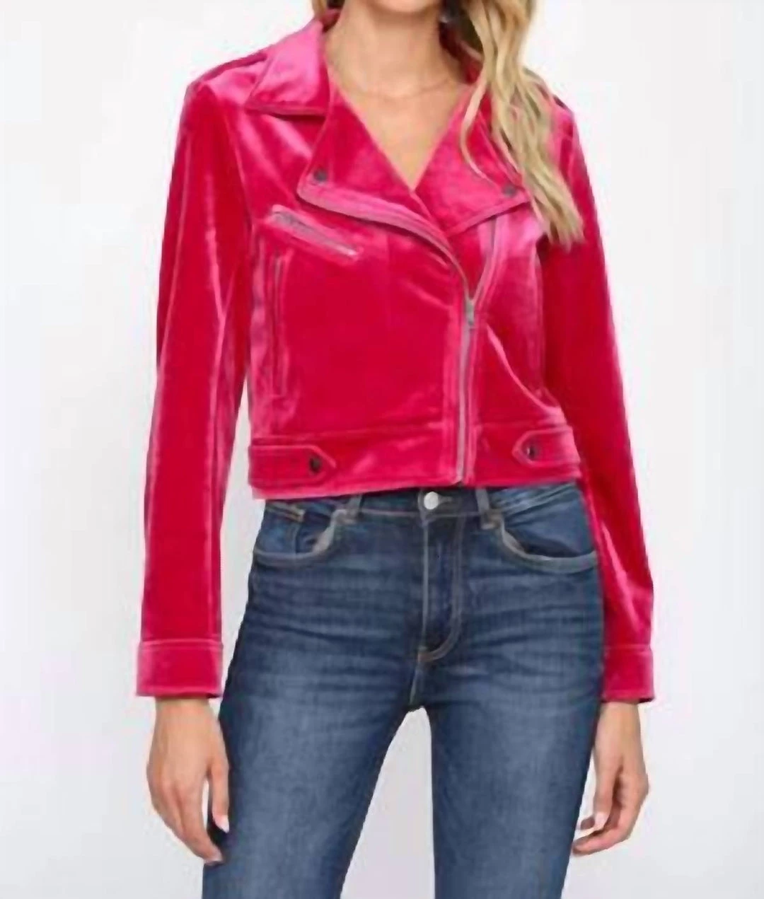 Be the first to review “Coupon โ Fate ๐ฉ women Tiff Velvet Moto Jacket in Magenta ๐” Cancel reply