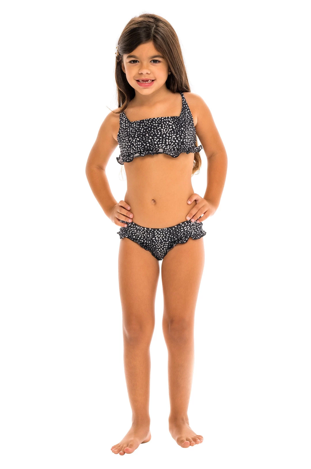 The Mini Zuma Bikini Set is the cutest lil ‘kini, featuring a little ruffle that adds the perfect amount of sweetness! Featuring our luxurious recycled nylon and fully adjustable straps, the Mini Zuma guarantees the perfect fit. Your little girl will love her comfy and cute suit that matches mommy!