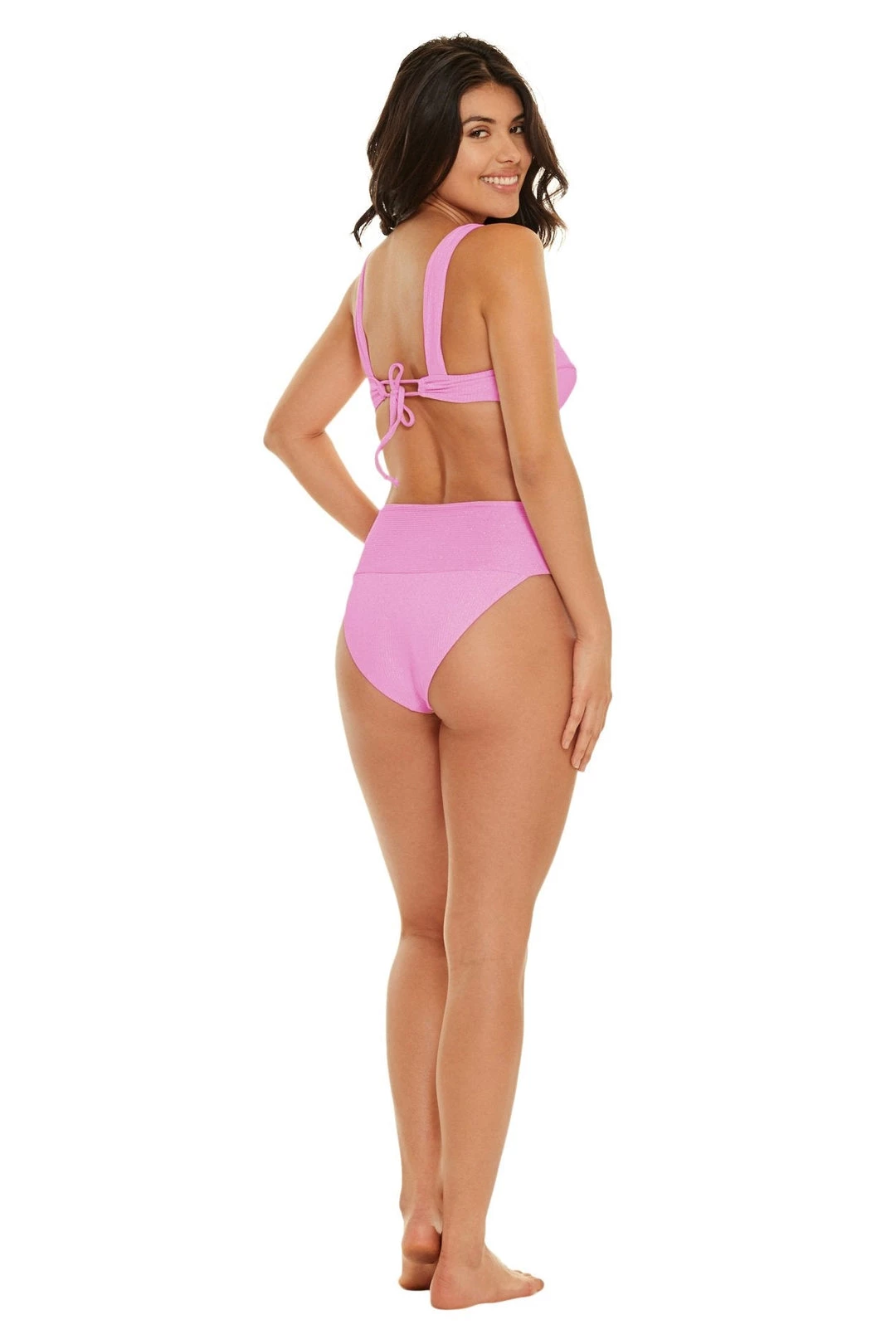 The new Monterey BottomΒ IsΒ a sexy high waist bikini bottom. The high cutΒ legΒ makes your legs look like they go on for days while the high waist fit flatters the waist line. Not only that, her chicΒ classic bottom coverageΒ is the perfect amount of cheek to show around your family or your honey.