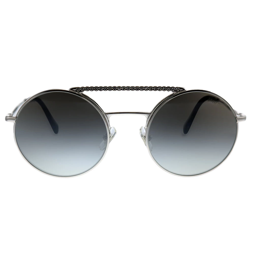 Miu Miu CORE COLLECTION MU 52VS 1BC5O0 Womens Silver Grey Gradient Lens Sunglasses Frame Color – Silver Frame Style – Round Frame Material – Metal Lens Color – Grey Gradient Lens Protection – UV Protected Includes – Miu Miu box, case, cloth and paperwork *may vary from picture Size – Lens 50 mm x bridge 20 mm x arms 140 mm